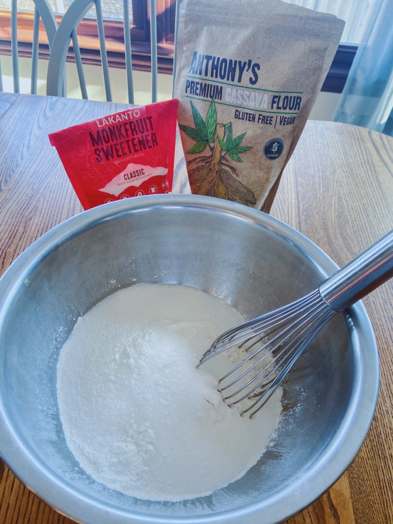 Now, how did I make this recipe sugar free, gluten free, AND vegan?! I had two special ingredients: Lakanto Monk Fruit Sweetener and Cassava Flour.