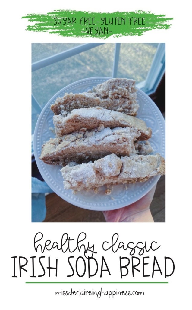I am ready for Spring! It has been BEAUTIFUL here in NW Illinois. Today, it’s supposed to reach 60 degrees. AHHHHH:) This sun makes me SO HAPPY. You know what has also made me happy…I was able to take my mom’s famous Irish Soda Bread recipe and make it sugar free, gluten free, AND vegan. Her bread recipe was one of my favorites and I now found a way to continue to enjoy it that fits with my clean lifestyle. Soooo for the second edition of #SugarFreeSunday, here is my Healthy Classic Irish Soda Bread: