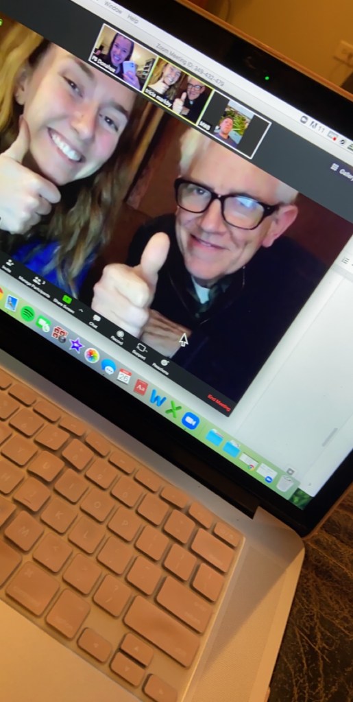 We have probably done this about 12901029 times since they started doing their trivia online! It is FREE (they have a paid-sponsored themed trivia on Friday nights at 5:30 Central Time BEFORE their free one at 7:30pm. Some examples of the sponsored-themed trivia have been NBA & The Office… they are having Friends this Friday). When we do the trivia, we have zoomed friends and family!