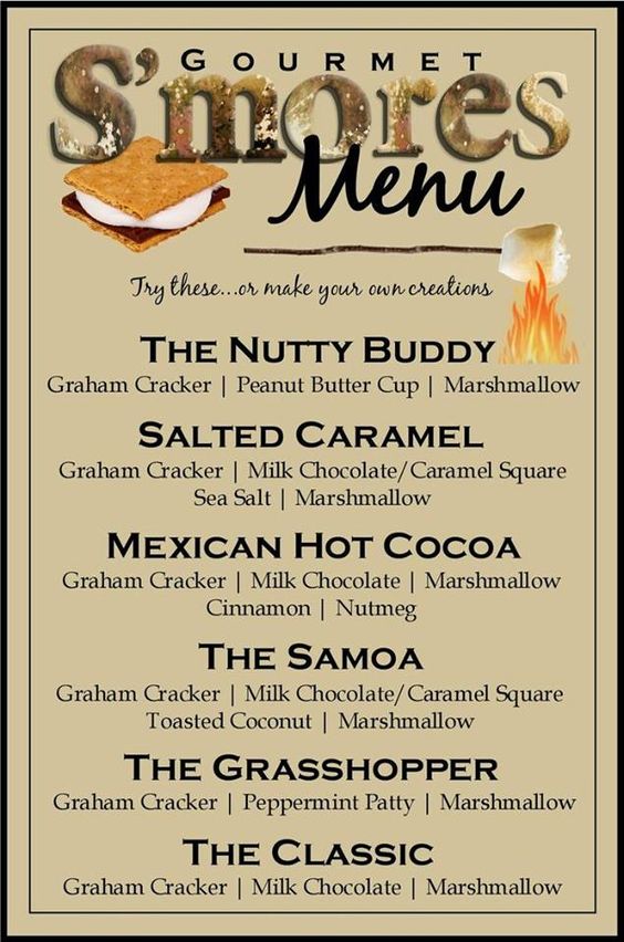 Have a campfire in your backyard! I think this would be a fun idea for us chilly midwesterners. Share stories, sing campfire songs, and make some fun s’mores. You can go with your classic graham cracker, chocolate, and marshmallow, ORRR you can make some of these courtesy of Pinterest: