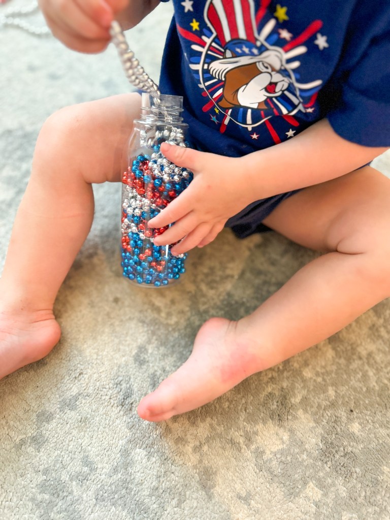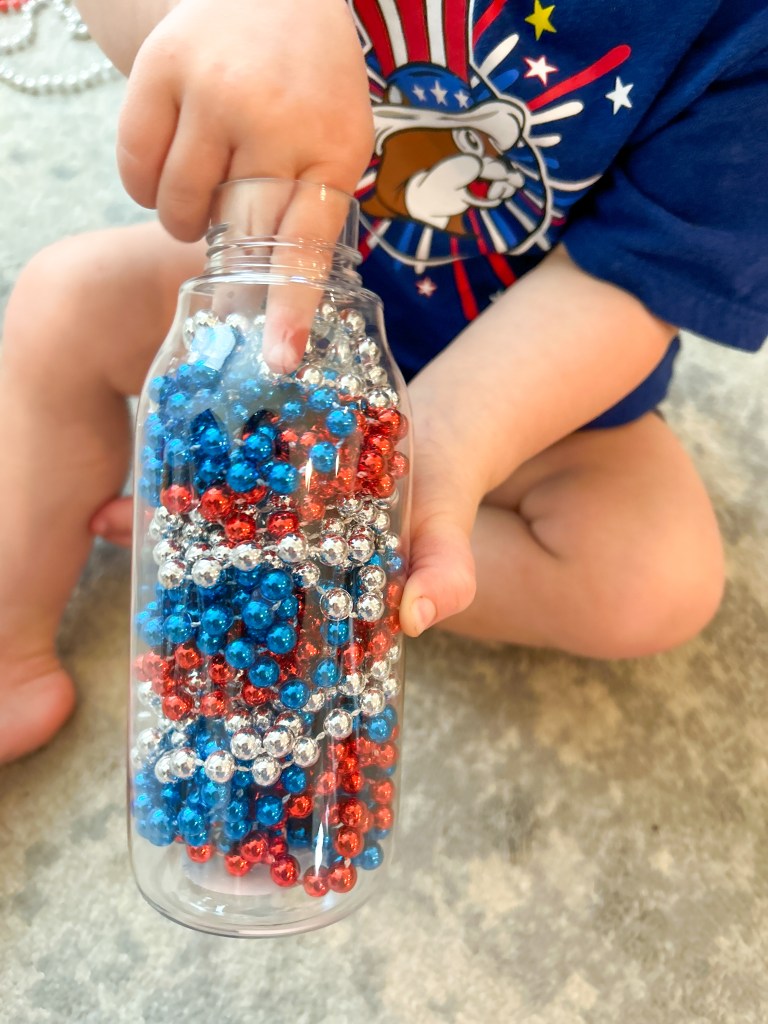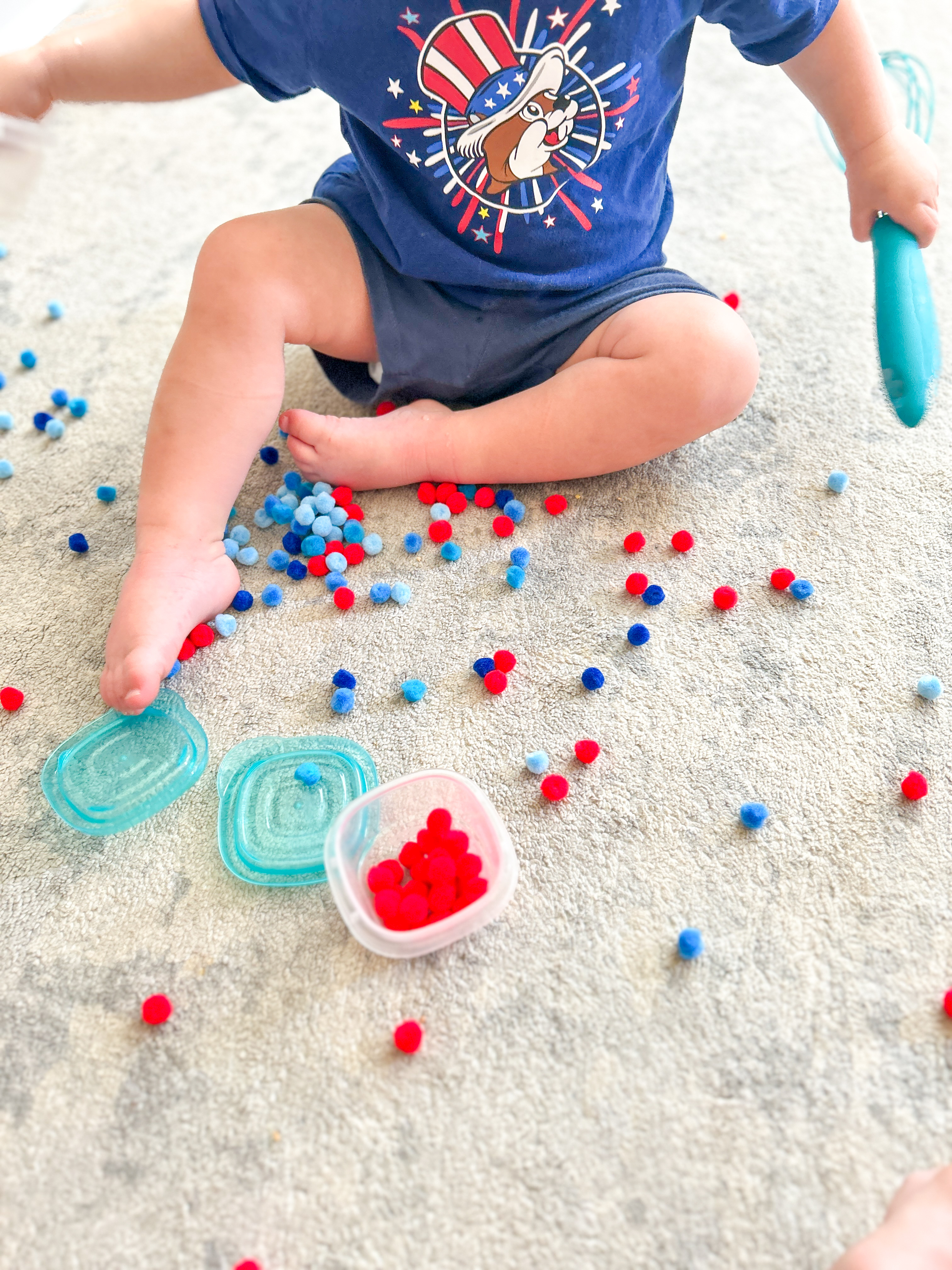 These activities were super fun and something you could do literally any day, but the fun red, white, and blue colors made me feel like they were festive. Be careful JoJo! Mama might repeat these activities for future holidays, just change up the colors!