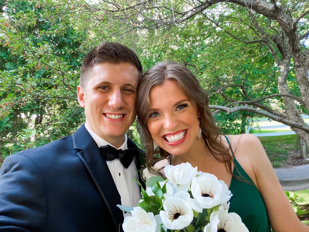 1.) I am married to my high school sweetheart, Joel!! He is currently in his intern year (first year of residency… still learning the lingo!!) & works so hard. We enjoy eating tacos, watching The Office, going on walks, and just hanging with our lil family.